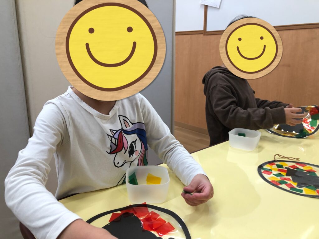 今回は、クリスマスのステンドグラスと折り紙でサンタさんを作りをしました!