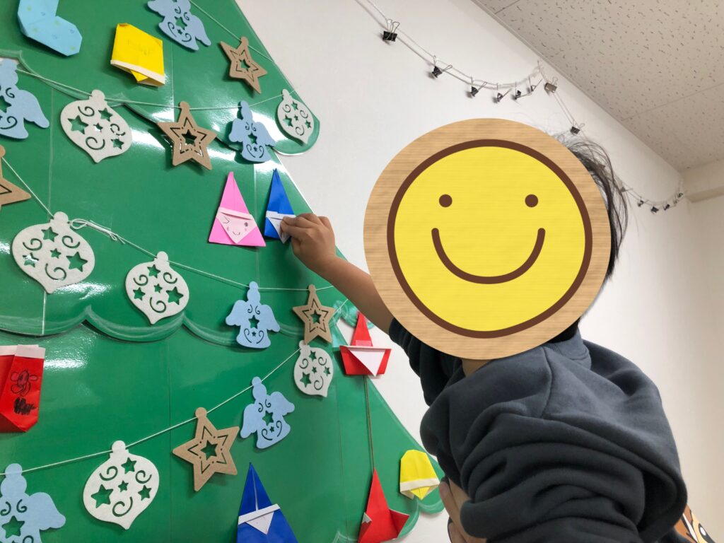 クリスマスツリーにサンタさんを貼ると、「私のサンタさんここにある!」と先生やお友だちに嬉しそうに話していました!✨