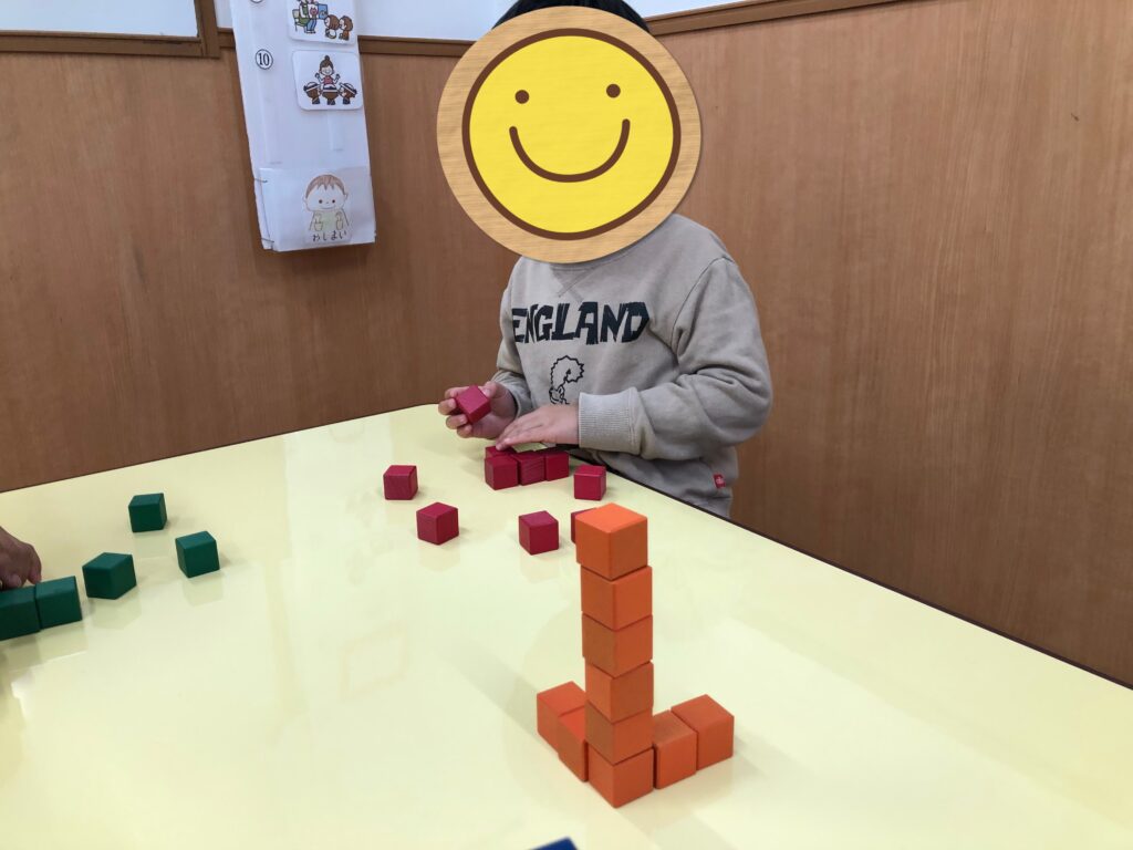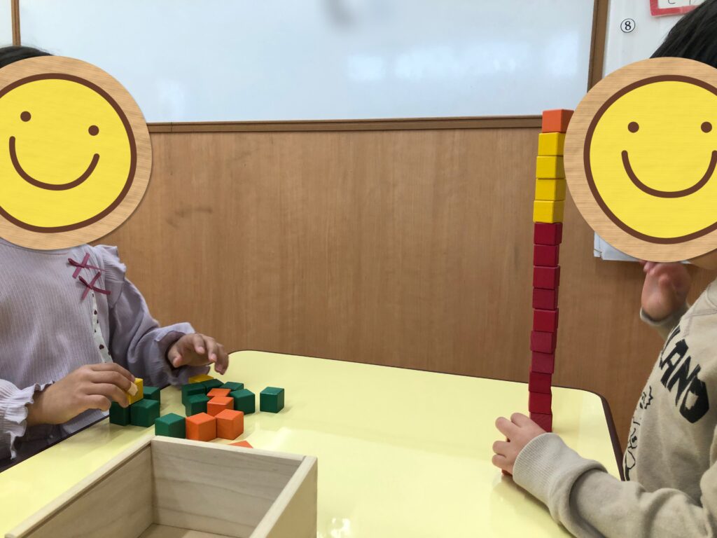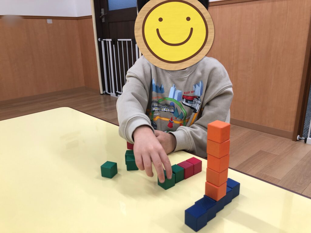 次に、「〇〇くんが先生役ね!」と伝え、見本を作る側にも挑戦しました!たくさん考えて見本を作っていだ子どもたち🤔🧠
