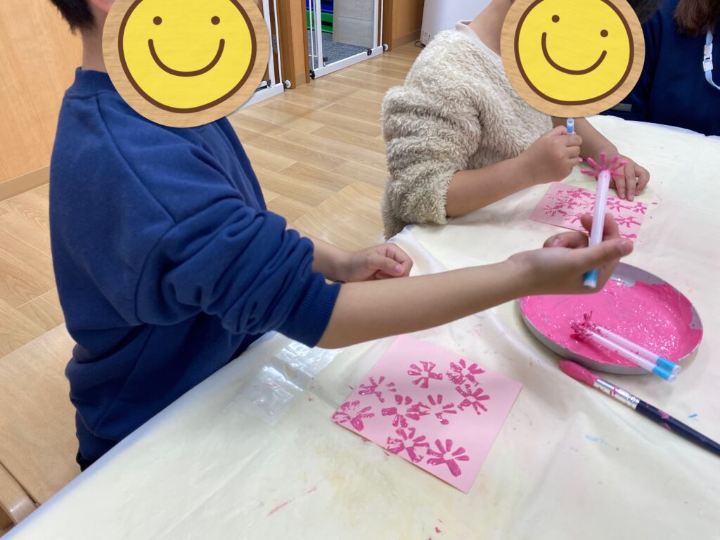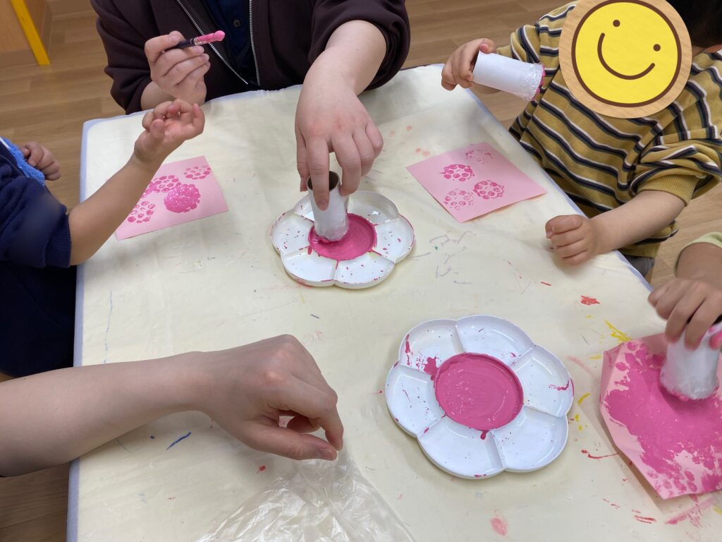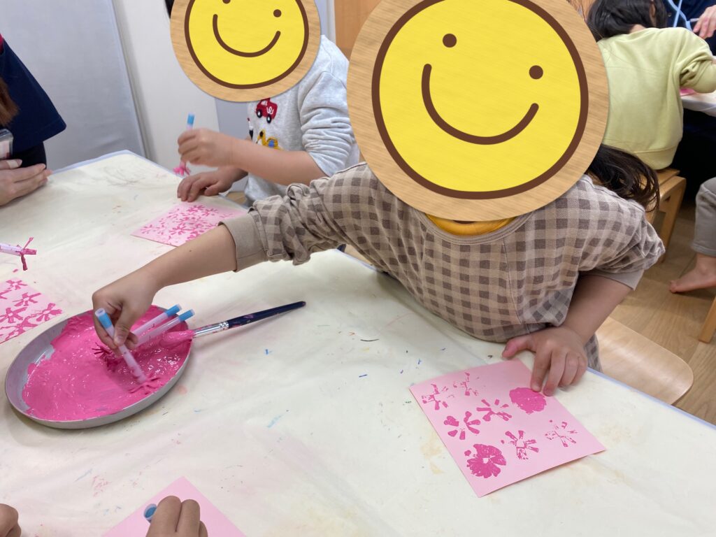 桜が完成すると、「先生見て!できた!!」「可愛い!」と嬉しそうに話していた子どもたちでした!✨✨